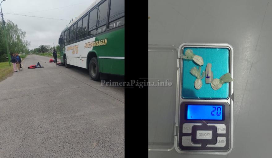 El choque entre una moto y un colectivo ocurrido este lunes en 11 y 112, Punta Lara, terminó con dos heridos y el hallazgo de cocaína entre las pertenencias de uno de los involucrados.