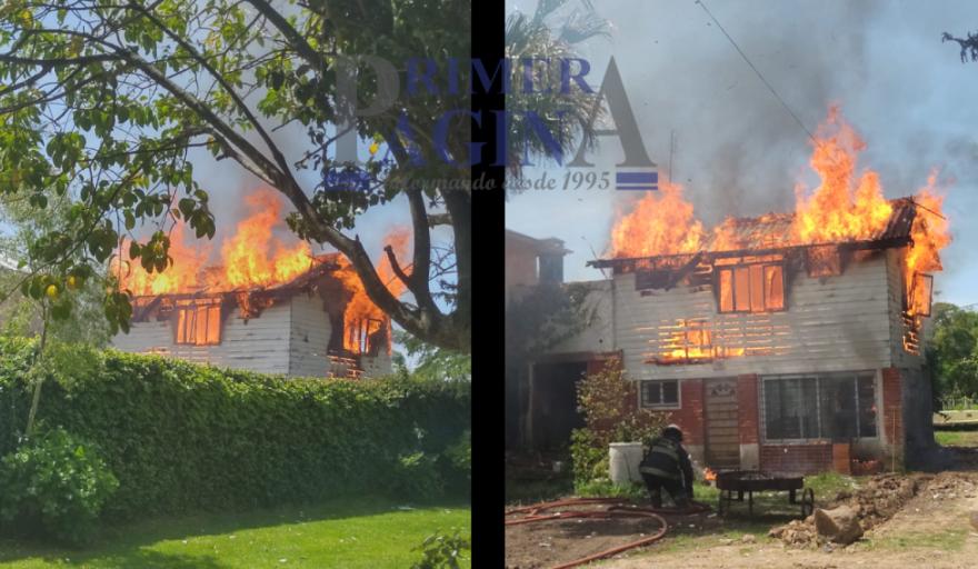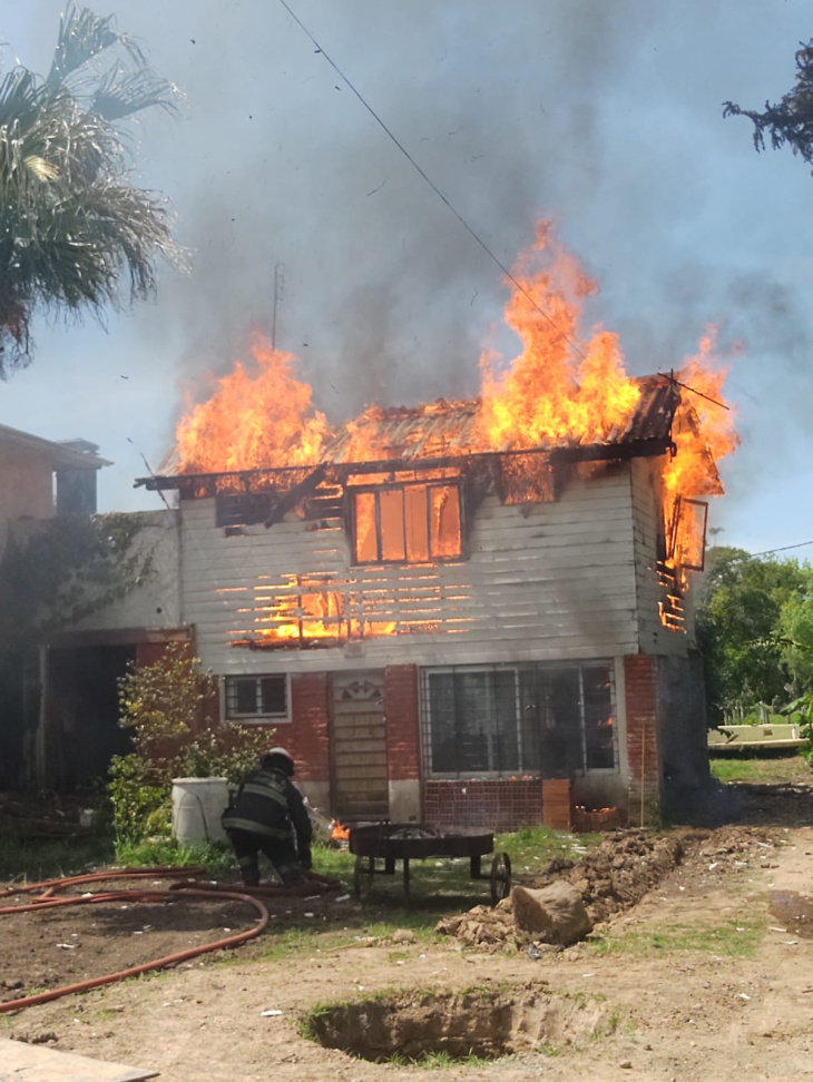Un incendio de grandes proporciones destruyó por completo una vivienda en Ensenada durante la tarde de este martes. El hecho ocurrió alrededor del mediodía en la zona de Zabala y entrada 10, aunque afortunadamente el propietario, un hombre que vivía solo, no sufrió heridas.