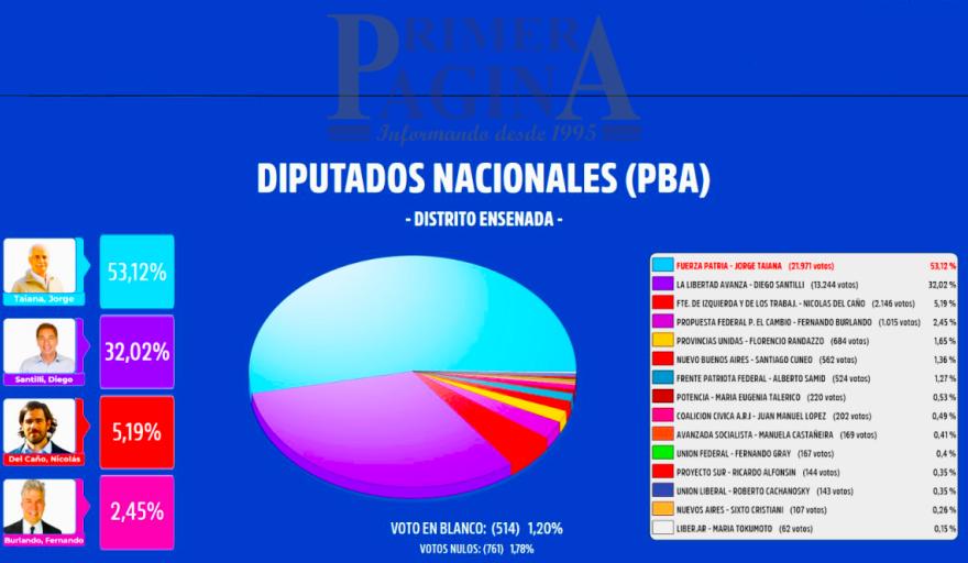 El intendente de la ciudad de Ensenada, Mario Secco, obtuvo uno de los mejores resultados de la Provincia de Buenos Aires, en las elecciones legislativas del domingo 26 de octubre de 2025, con una amplia ventaja a favor de Fuerza Patria. Con 53,12%, Taiana