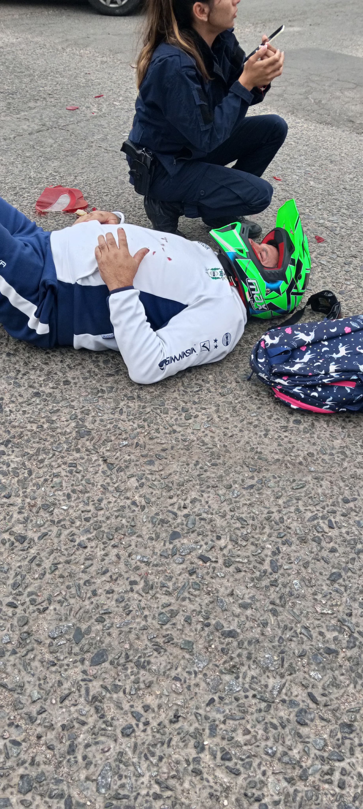 Camilleri venía manejando una moto Enduro 250 nueva, con el casco puesto y llevaba consigo una mochila infantil, por lo que se supone que iba a buscar a alguno de los nenes de su familia para llevarlo a la escuela.