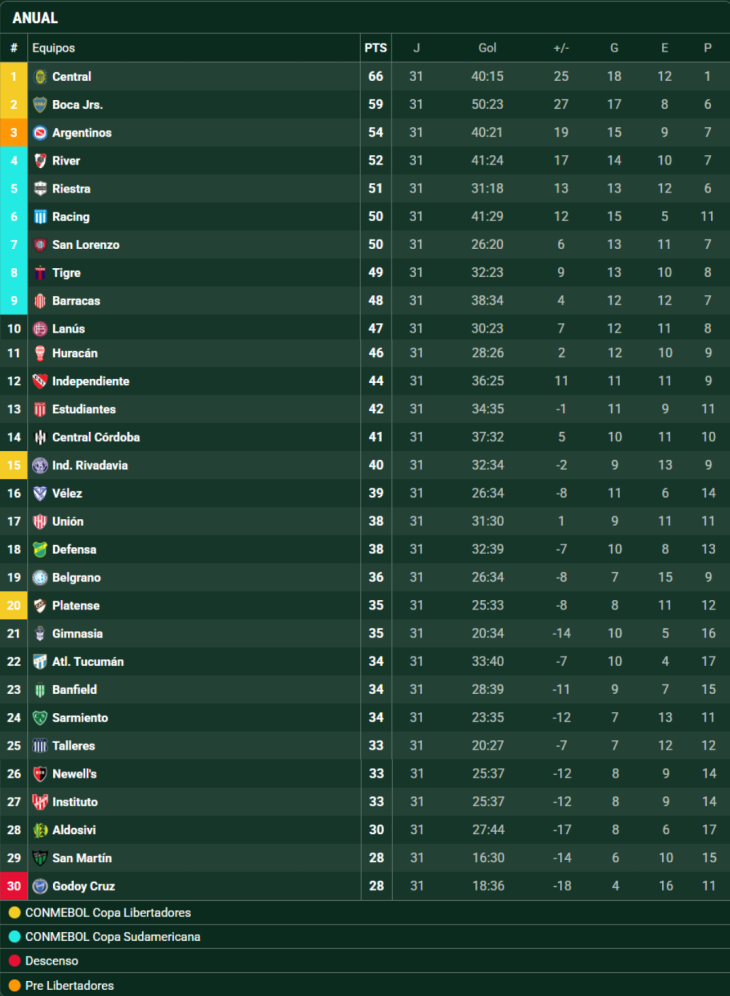 Incluso si Argentinos empata, la diferencia de gol, hoy favorable al conjunto de La Paternal (+19 contra +17), obliga a River a ganar por dos tantos o más. Cualquier otro escenario lo empuja de manera directa a disputar la Copa Sudamericana. El margen de error es mínimo y las consecuencias, significativas.