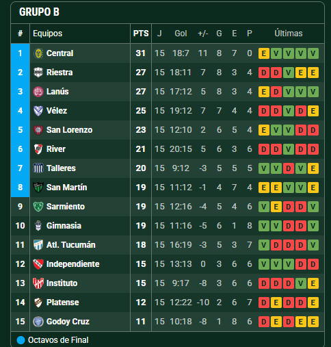 El equipo albiazul se ubica hoy en la décima posición, aunque iguala en puntos con los clubes que ocupan los puestos 8 y 9. Esta paridad mantiene abierto el escenario de clasificación, condicionado además por los resultados que se den en los partidos del fin de semana entre sus rivales directos.