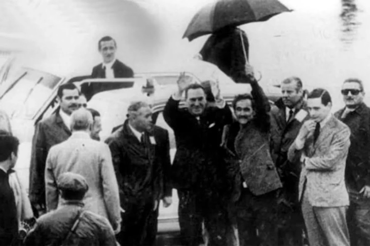 La aeronave aterrizó a las 11.09 en una mañana lluviosa. La imagen del dirigente José Ignacio Rucci cubriendo a Perón con un paraguas recorrió el mundo: después de 17 años, el líder justicialista había pisado nuevamente suelo argentino.