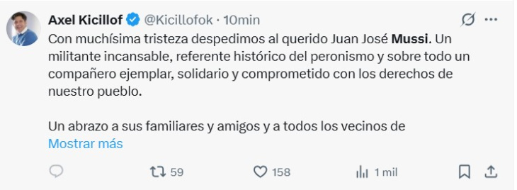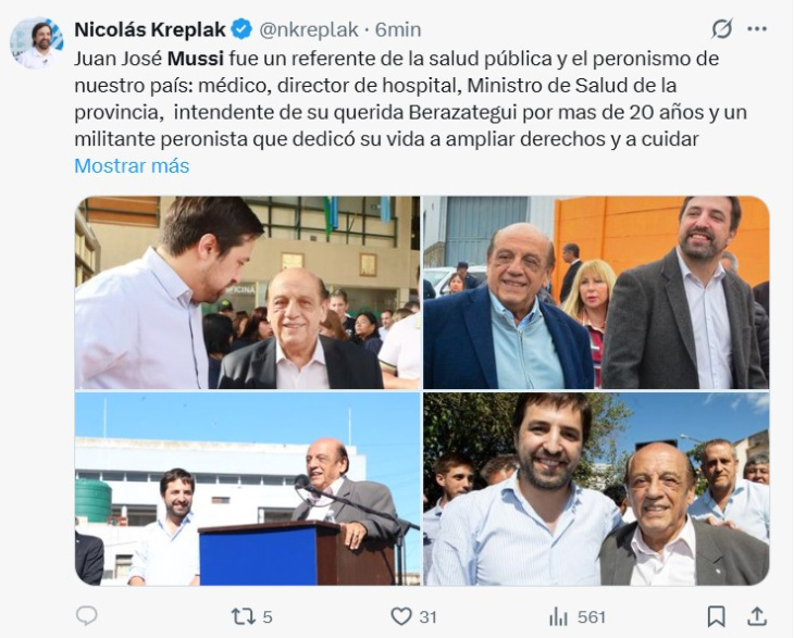 Mussi trabajó en la fábrica textil SNIAFA mientras estudiaba Medicina en la UNLP.