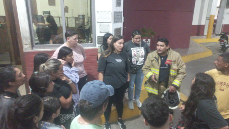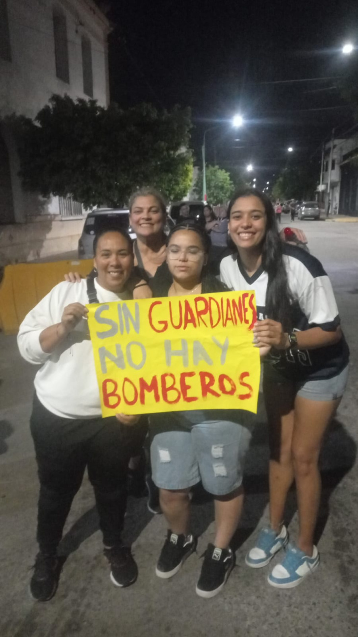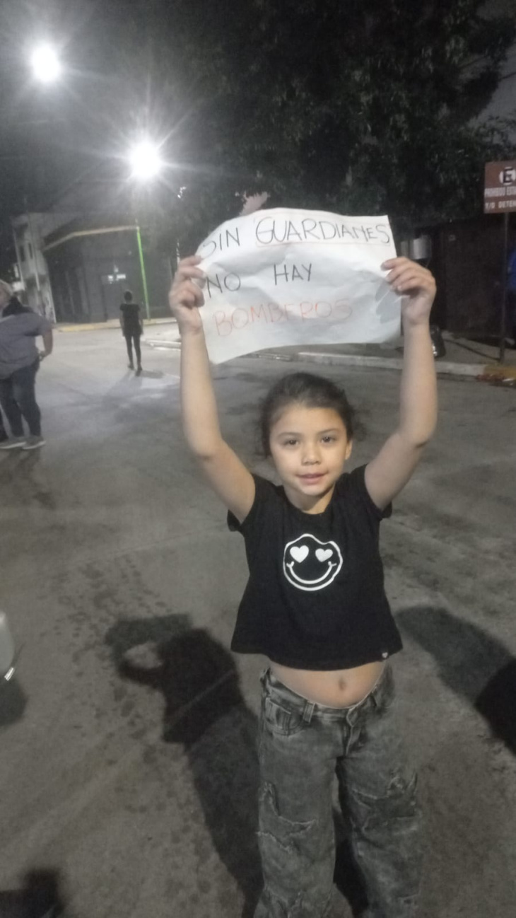 Tras una convocatoria realizada en redes social, varios vecinos se acercaron a la puerta del cuartel central, donde sonaron las sirenas y bombos y redoblantes para hacer mas estridente el reclamo.
