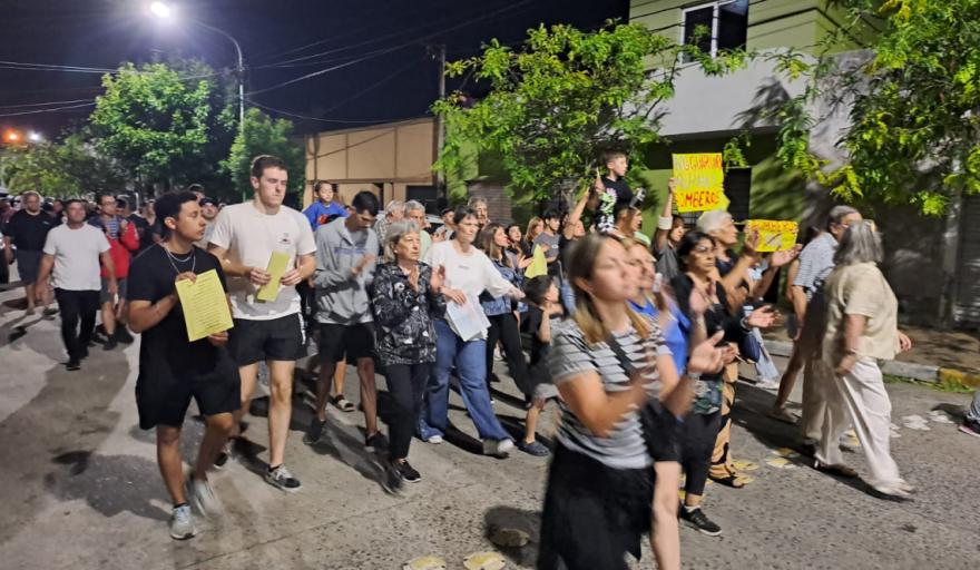 Los manifetantes cubrieron mas de una cuadra con el reclamo, recorriendo las principales calles centricas de la ciudad, donde otros vecinos se fueron sumando a la protesta y los automovilistas se plegaban haciendo sonar sus bocinas.