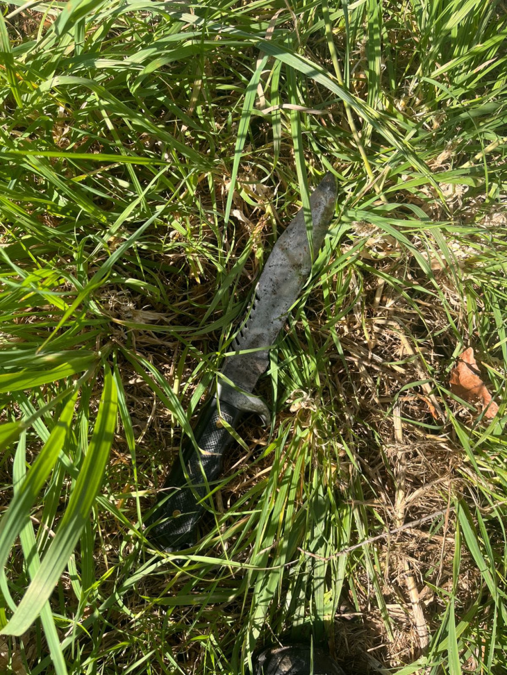 Durante la fuga, el sospechoso descartó el cuchillo y se arrojó a un segundo zanjón, donde fue reducido por integrantes del Grupo Motorizado Departamental. En el lugar del ataque se secuestraron dos cuchillas de unos 30 centímetros y otra arma blanca quedó incautada tras su aprehensión.