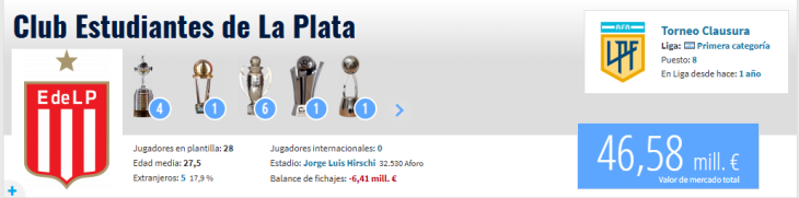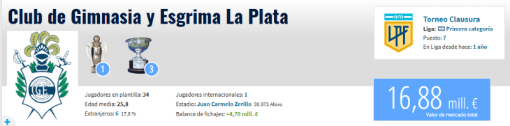 Los números explican el contraste. Boca encabeza la tabla de valuaciones con 83,35 millones de euros, Racing lo sigue con 77,23 millones y Estudiantes completa el lote con 46,58 millones. Muy lejos de esos montos aparece Gimnasia, cuyo plantel está tasado en 16,88 millones de euros, casi tres veces menos que su rival directo y cinco veces menos que los de la otra semifinal.