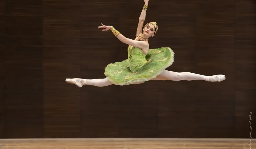 La pieza se despliega a través de una selección de sus escenas más emblemáticas, donde los roles principales rotan entre distintos elencos, otorgando a cada función una identidad interpretativa propia. Nikiya, Solor y Gamzatti —figuras que encarnan los vértices de un triángulo marcado por la lealtad, la traición y el deseo— encuentran nuevas capas de lectura en las versiones de Romina Panelo, Julieta Paul, Miguel Ángel Klug, Emanuel Gómez, Sabina Álvarez y Jazmín Gude Alonso.