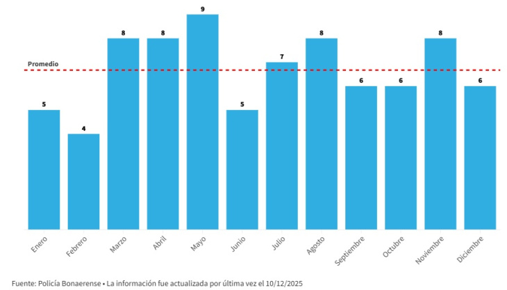 Las estadísticas evidencian una problemática persistente en La Plata, Berisso y Ensenada, con promedios mensuales que reflejan más de un fallecido por semana. Pese a diversas intervenciones en materia de prevención vial, la cantidad de accidentes fatales sigue en ascenso y genera inquietud entre autoridades y vecinos ante la proximidad de un período tradicionalmente complejo para la circulación.