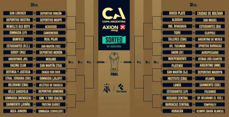 Entre los duelos destacados se ubican Independiente ante Atenas de Río Cuarto, Racing frente a San Martín de Formosa y San Lorenzo contra Deportivo Rincón de Neuquén. Huracán se enfrentará a Olimpo, mientras que Vélez hará su estreno ante Deportivo Armenio. También sobresalen Estudiantes vs Ituzaingó, Lanús vs Sarmiento de La Banda, Rosario Central vs Sportivo Belgrano y Newell’s ante Acassuso.