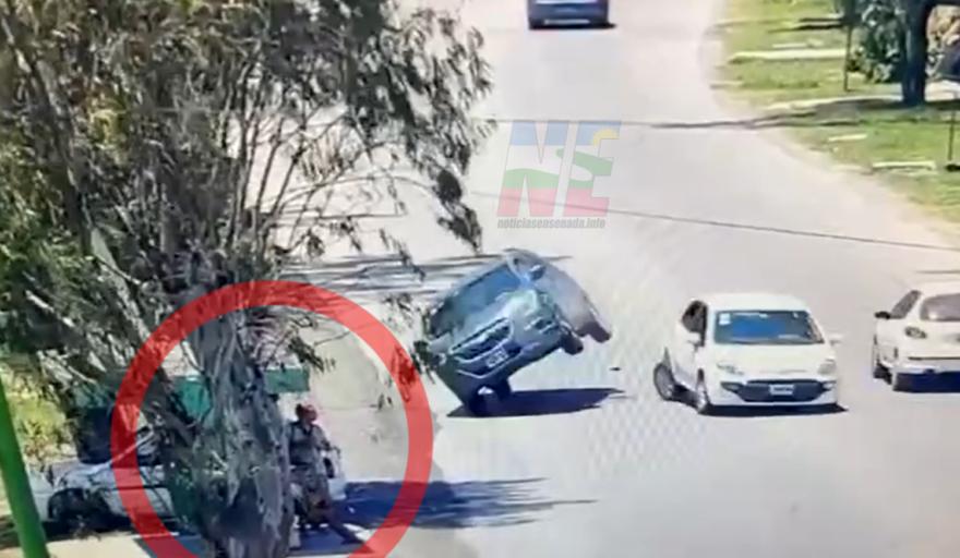 Un impactante accidente de tránsito se registró este martes en Ensenada y quedó registrado por una cámara de seguridad. El choque ocurrió en la localidad de Punta Lara, la intersección de avenida Almirante Brown y calle 16 y estuvo a centímetros de terminar con dos peatones atropellados.