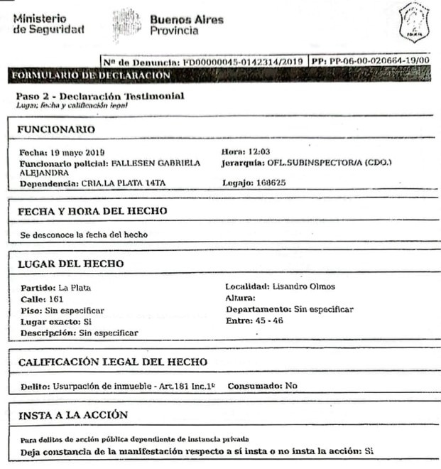 Según los damnificados, en su momento apostaron a comprar las tierras para edificar, desconociendo la injerencia de esta comunidad en esta zona de la ciudad de La Plata.