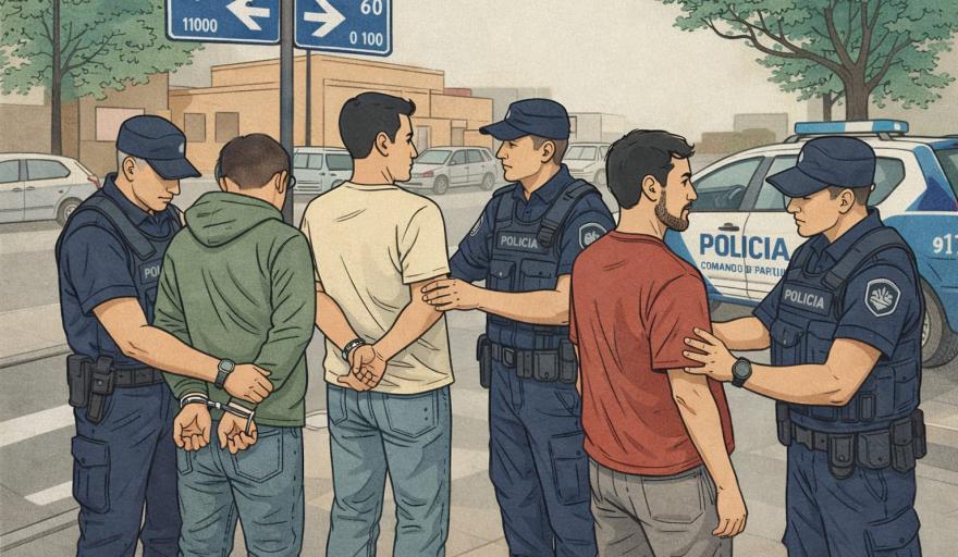 La intervención estuvo a cargo del Comando de Patrullas, cuyos agentes detectaron la maniobra ilícita mientras los sujetos merodeaban la zona y abordaban a los automovilistas que intentaban estacionar sus vehículos. Según el parte oficial, los detenidos fueron identificados como:, Rodrigo (23), Ignacio (31) y Brian (32)
