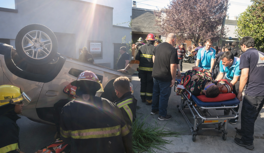 La fuerza del impacto provocó que la conductora del Renault Kwid, una mujer de 46 años, perdiera el control de la unidad, la cual terminó volcando y quedando apoyada sobre su techo en plena calzada. La violencia del movimiento dejó a la mujer atrapada dentro del vehículo, lo que generó momentos de gran incertidumbre entre los transeúntes.