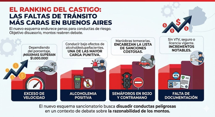 El nuevo esquema endurece significativamente las penas para las conductas que ponen en riesgo la vida. Según las autoridades viales, el objetivo es disuasorio, aunque el monto de las sanciones ha reabierto el debate sobre su razonabilidad.