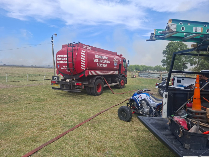 La lucha contra las llamas no fue una tarea solitaria. El cuartel de Bomberos Voluntarios de Berisso lideró el despliegue con cinco autobombas y dos unidades forestales, pero la voracidad del incendio obligó a solicitar refuerzos regionales. De inmediato, se sumaron dotaciones de Bomberos de Ensenada, Bomberos de Bavio y Bomberos de Magdalena, conformando un frente unido para proteger el patrimonio natural y habitacional de la zona.