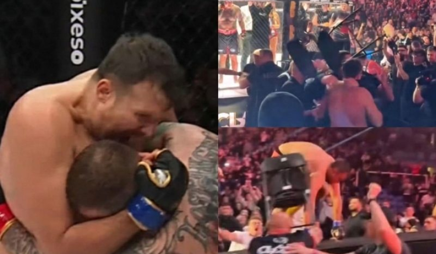 La situación se descontroló tras la decisión arbitral. Vasko abandonó rápidamente el octágono, pero fue interceptado por miembros de la esquina rival y por aficionados enfurecidos.