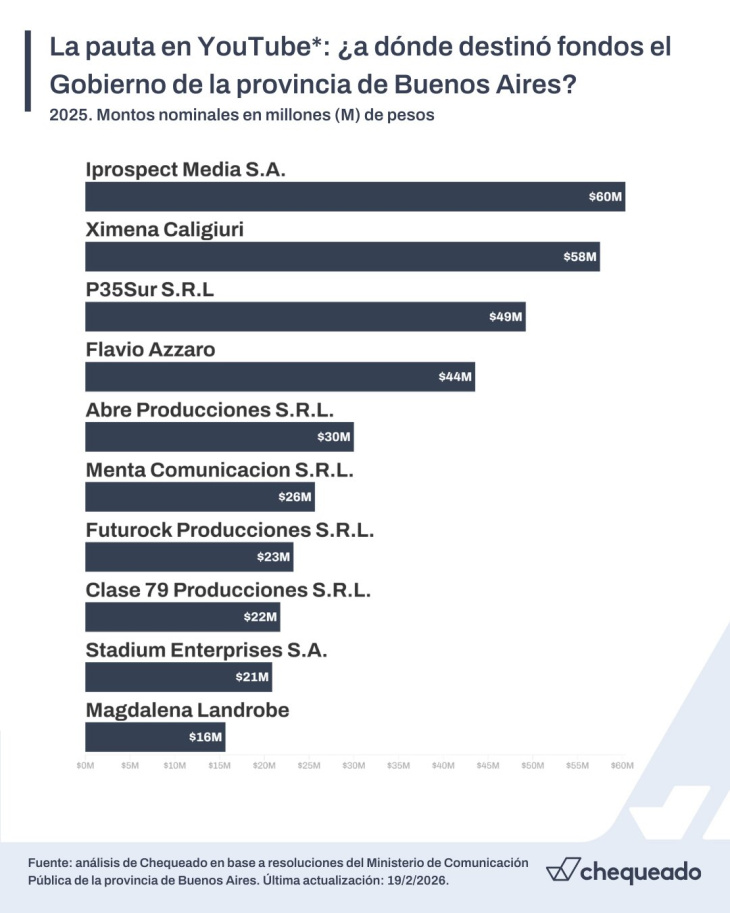 Otros beneficiados en este rubro incluyen a Cenital (Iván Schargrodsky) con $49,2 millones para YouTube y la radio Futurock, que entre su portal y YouTube sumó más de $233 millones en 2025.