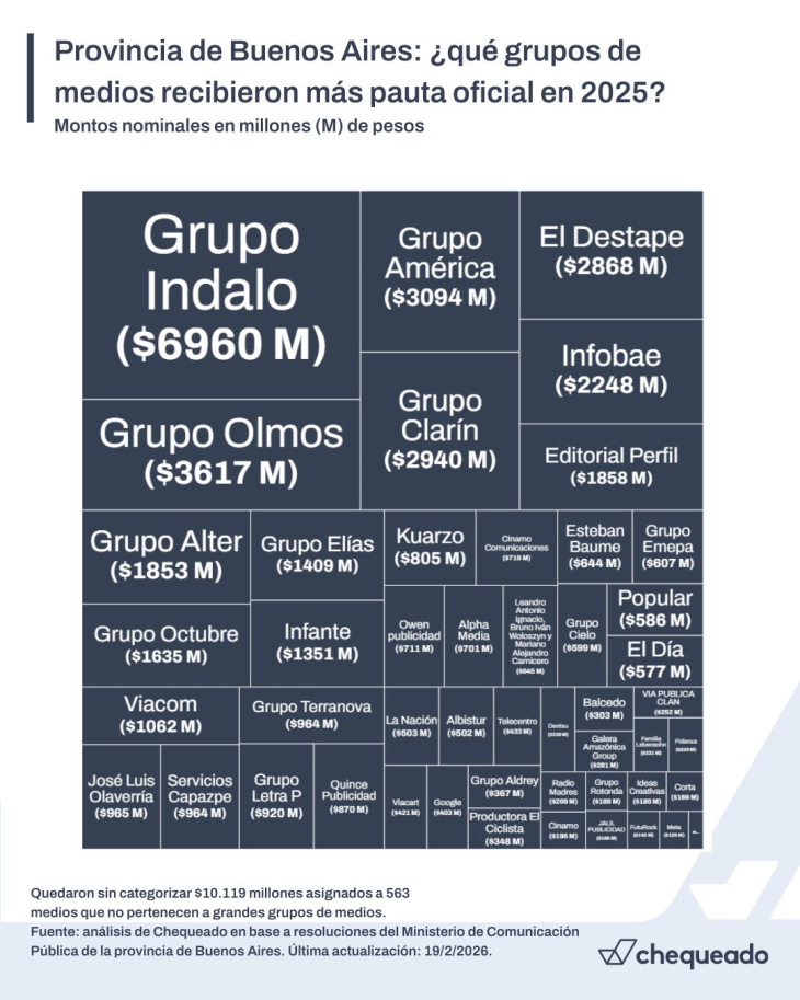 Si bien aparecen nombres como Rogelio Rotonda de Tandil con $351 millones o el Grupo Elías de Bahía Blanca con casi $1.600 millones, estos casos son excepciones que confirman la regla: para recibir pauta millonaria en la provincia de Buenos Aires, hay que tener peso político, presencia y dirección formal en CABA.