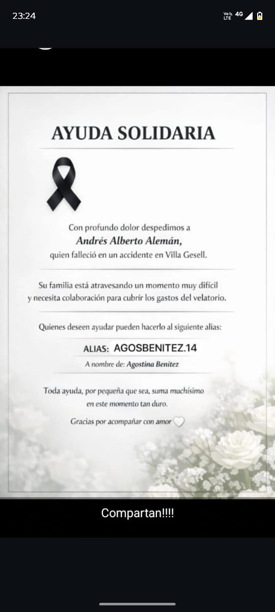 Tras conocerse la noticia, allegados y familiares comenzaron a despedirlo a través de redes sociales con mensajes de dolor. Al mismo tiempo, iniciaron una colecta solidaria para costear los elevados gastos del traslado del cuerpo y el sepelio, debido a que la familia no cuenta con los recursos necesarios para afrontar el proceso en este contexto de emergencia.