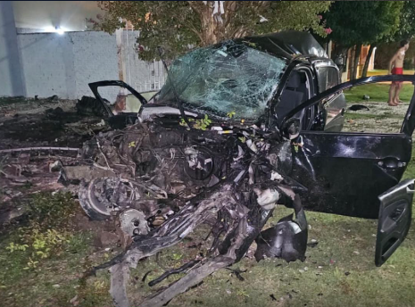 Al arribar, los agentes se encontraron con una escena devastadora: un automóvil Volkswagen Gol Trend de color negro había impactado violentamente contra un paredón.