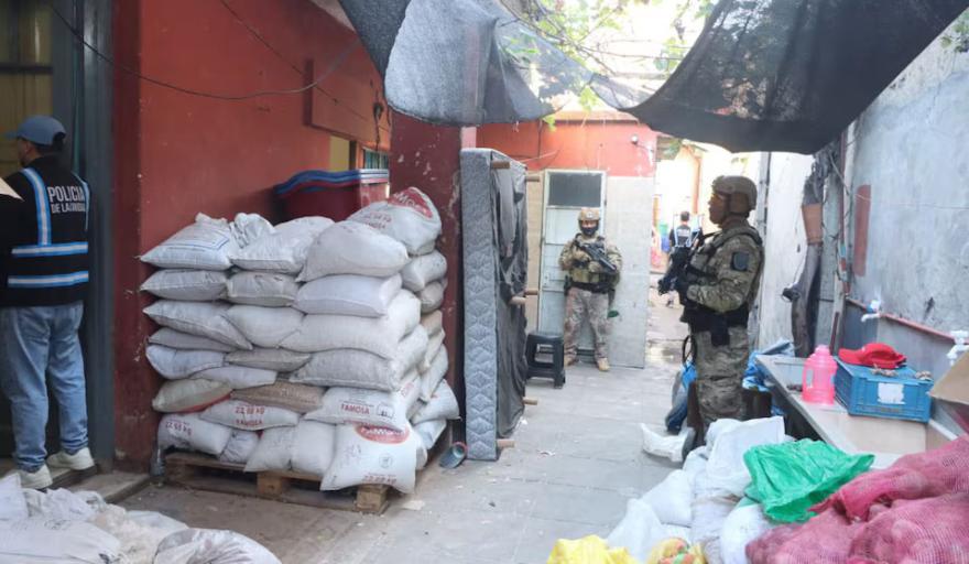 Con esta información, el juez ordenó un allanamiento nocturno en un predio de la calle Palmar al 7200, en Liniers. Allí funcionaba un complejo compuesto por dos locales comerciales, cinco depósitos y seis viviendas. El lugar operaba como un centro logístico clandestino.