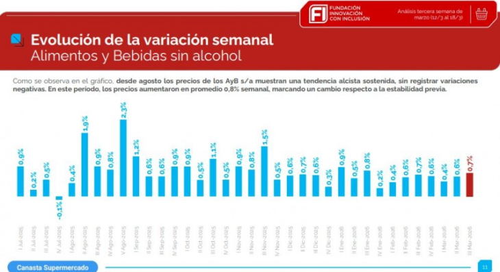 A esto se suma que, según estimaciones privadas, la inflación de marzo rondaría el 3%, con una reciente aceleración en alimentos detectada en la tercera semana del mes.