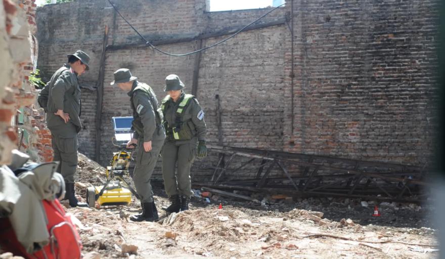 El operativo, coordinado por el fiscal Gonzalo Petit, comenzó con tareas de desmalezamiento y limpieza del predio para permitir el paso del georradar, una herramienta tecnológica que detecta anomalías en el subsuelo sin necesidad de excavar a ciegas.