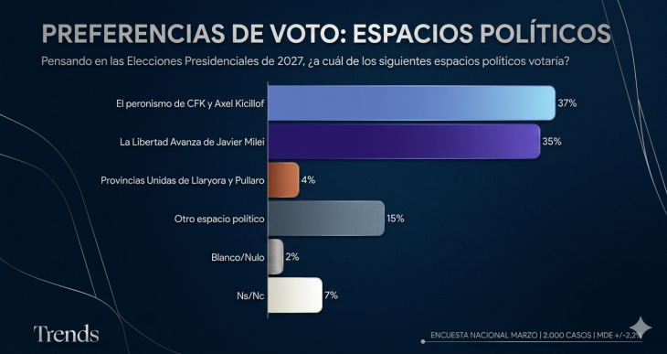 Esta erosión ética ha pavimentado el camino para el retorno del peronismo. El estudio sugiere que el frente opositor no solo está ordenado, sino que aparece competitivo incluso en escenarios de primera vuelta.