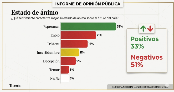 Según el último informe nacional de la consultora Trends, realizado sobre 2.000 casos en todo el país, el clima social en Argentina es de una negatividad asfixiante.