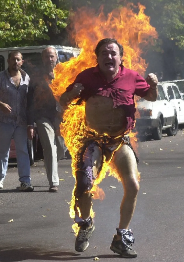 Las llamas lo envolvieron de inmediato. A pesar de los intentos desesperados de algunos testigos y efectivos de seguridad por apagar el fuego con extintores y camperas, el exlegislador sufrió quemaduras en el 90% de su cuerpo.