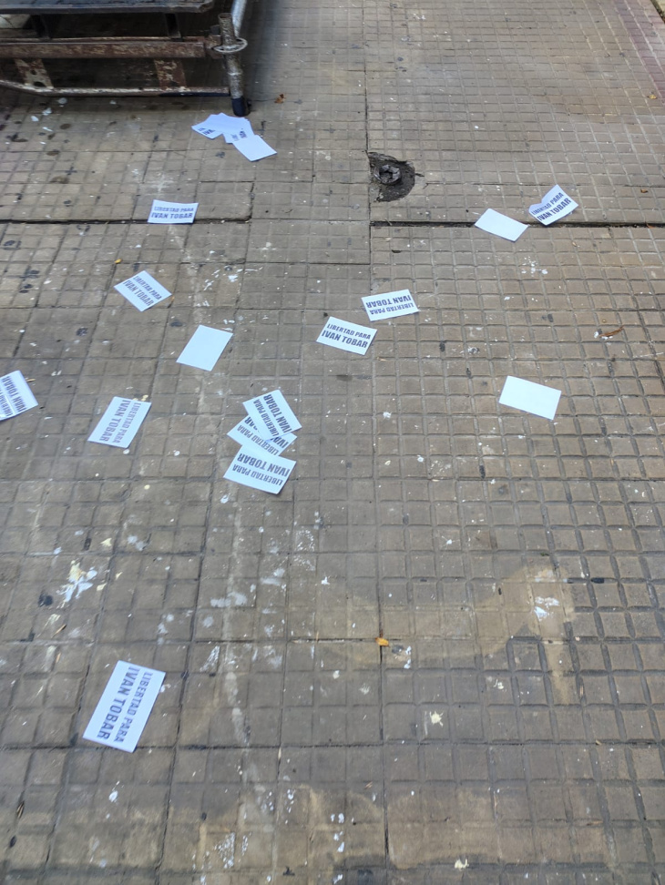 Miles de panfletos con una consigna asfixiante cubrieron las veredas: "Libertad para Iván Tobar".