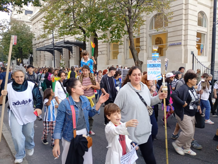 Una de las notas distintivas de esta jornada fue la activa participación de la Red de Familias de la Escuela Anexa. Padres y madres se sumaron a la columna para visibilizar que el conflicto universitario afecta también a los más chicos. En un comunicado conjunto, señalaron: